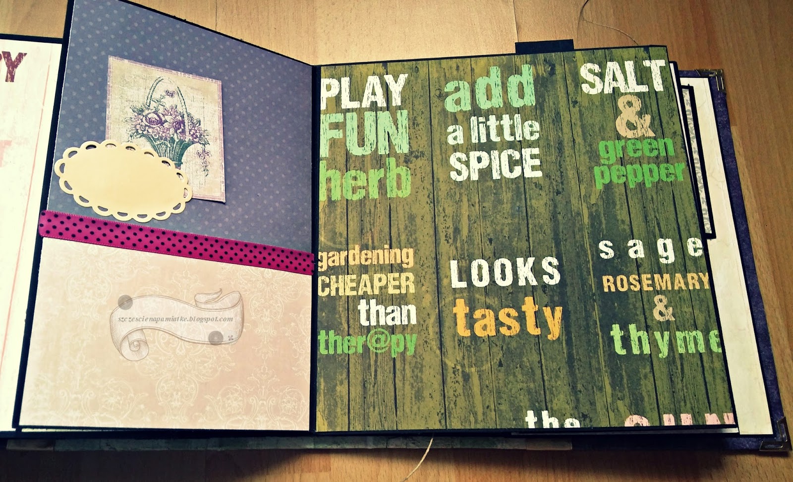 Wracając jednak do samego albumu, to całość jak widzicie jest w zupełnie odmiennym stylu niż "siostrzany" album. Tutaj króluje fiolet, zieleń, ciemne tło. Obie siostry są zdecydowanie od siebie różne, więc i albumy nie mogły być takie same. Mam nadzieję, że spodobają się obdarowanym. Do albumu